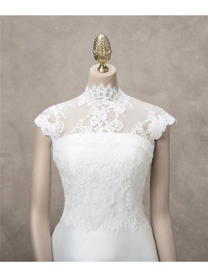2. Beautiful High Neck Cap Sleeve Vintage Lace Wedding Bridal Jacket