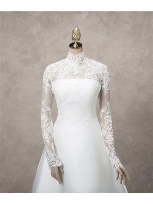 1. Elegant High Neck Long Sleeve Vintage Lace Wedding Bridal Jacket