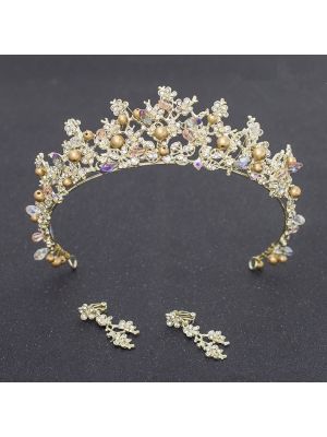 - Gorgeous Pearl Crystal Gold Leaf Prom Homecoming Tiara Crown With Earringswas $65.00 Special Price $25.00
