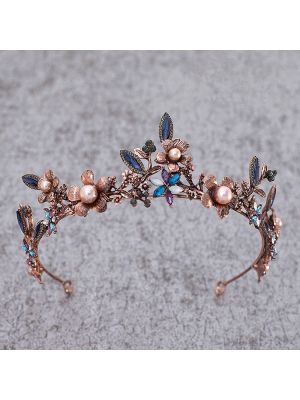 - Vintage Royal Blue Crystal Pearl Copper Leaf Prom Homecoming Tiara Crownwas $129.00 Special Price $23.99