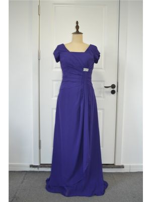 - Elegant Ruched A Line Prom Party Dress Square Neckline Short Sleeves Purple Chiffon With Crystalwas $665.00 Special Price $32.00