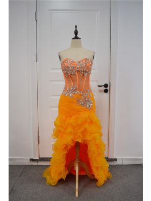 - Sexy See Through High Low Mermaid Prom Party Dress Sweetheart Ruffled Orange Organza With Crystalswas $655.00 Special Price $29.00