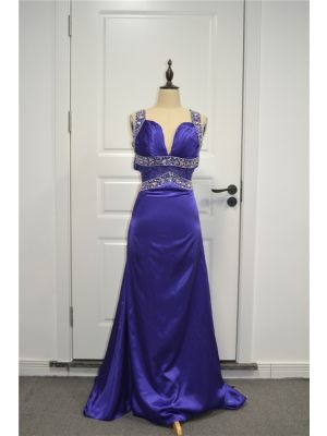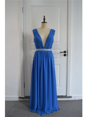 - Beautiful Ruched Royal Blue A Line Prom Party Dress Deep V Neck Open Back With Crystalswas $612.00 Special Price $35.00