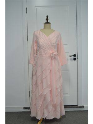 - Modest Plus Size Tiered Prom Party Dress V Neck Long Sleeves Pink Chiffon With Flowerwas $625.00 Special Price $31.00