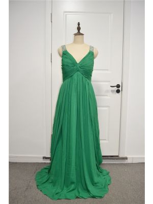 - Elegant Beaded And Ruched A Line Prom Party Dress V Neck Sleeveless Green Chiffonwas $625.00 Special Price $33.00