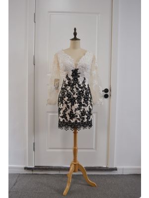 - Elegant Two Tone Short Mini Sheath Lace Prom Party Dress V Neck Long Sleeveswas $685.00 Special Price $32.00