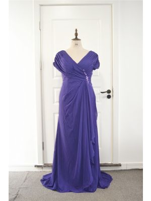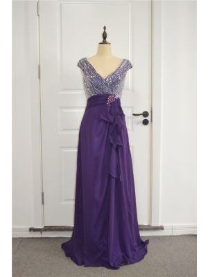 - Sparkly A Line Beaded Prom Party Dress V Neck Cap Sleeves Purple Chiffon Ruffles With Crystalswas $655.00 Special Price $33.00