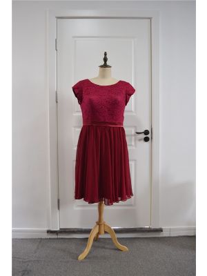 - Elegant Short A Line Prom Bridesmaid Dress Scoop Short Sleeves Burgundy Lace Chiffonwas $585.00 Special Price $26.00