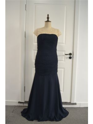 - Stunning Beaded Mermaid Prom Party Dress Scoop Short Sleeves Navy Blue Chiffonwas $682.00 Special Price $36.00