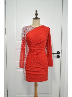 - Sparkly Beaded See Through Short Mini Red Prom Party Dress V Neck Long Sleeveswas $652.00 Special Price $35.00