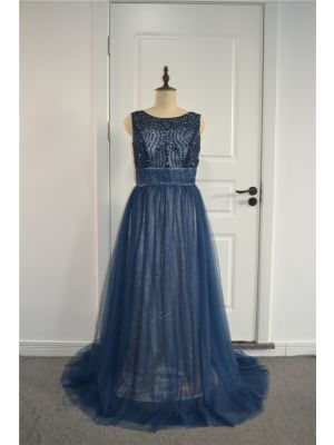 - Sparkly Beaded A Line Prom Party Dress Scoop Open Back Navy Blue Tullewas $682.00 Special Price $34.00