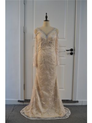 - See Through Beaded Mermaid Prom Party Dress V Neck Cold Shoulder Long Sleeves Champagne Lacewas $672.00 Special Price $33.00