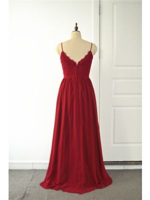 - Elegant A Line Prom Bridesmaid Dress V Neck Spaghetti Straps Red Lace Chiffonwas $539.00 Special Price $29.00