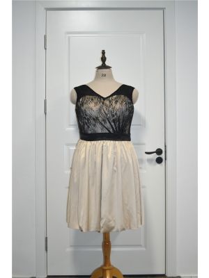 - Two Tone Plus Size Prom Party Dress V Neck Black Lace Champagne Satin With Bowwas $482.00 Special Price $29.00