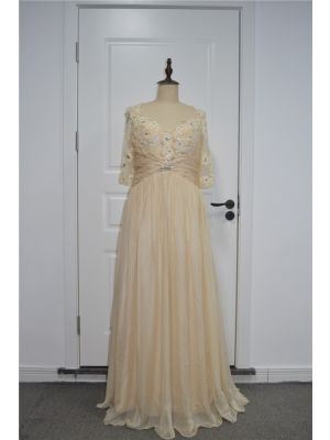 - Elegant A Line Prom Party Dress Queen Anne Neckline 3 4 Sleeves Champagne Chiffon With Crystalswas $592.00 Special Price $32.00