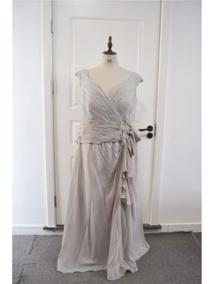 - Plus Size Beaded Grey A Line Prom Party Dress V Neck Cap Sleeves With Flowerswas $632.00 Special Price $35.00