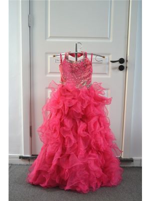 - Sparkly Puffy Hot Pink Organza Ruffles Flower Girl Party Dress Halter With Crystalswas $682.00 Special Price $32.00