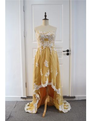 - Stunning Beaded Gold High Low Prom Party Dress Sweetheart With White Lacewas $612.00 Special Price $29.00