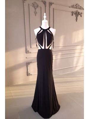 - Sexy Mermaid High Neck Sleeveless Long Black Jersey Cut out Prom Evening Dresswas $559.00 Special Price $125.00
