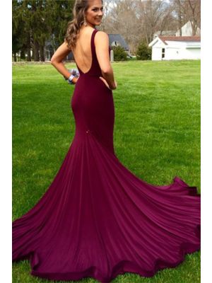 - Sexy Long Mermaid Purple Jersey Beaded Prom Party Dress Scoop Sheer Backwas $699.00 Special Price $148.00