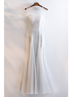 - Elegant Scoop Corset Light Grey Tulle Beaded Mermaid Prom Evening Dress With Keyhole In Backwas $876.00 Special Price $186.00