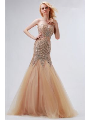- Chic Trumpet Mermaid Sweetheart Champagne Tulle Beaded Prom Dresswas $1,050.00 Special Price $299.00
