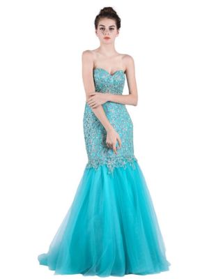 - Gorgeous Mermaid Sweetheart Champagne And Turquoise Tulle Beaded Prom Dresswas $950.00 Special Price $227.00