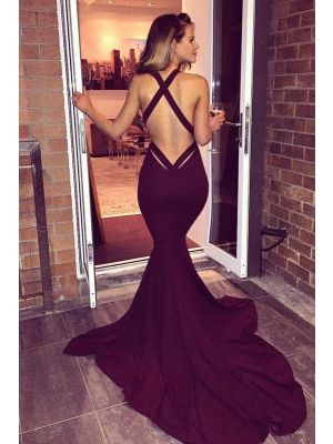 - Elegant Mermaid V Neck Cross Straps Back Burgundy Prom Evening Dresswas $729.00 Special Price $135.00