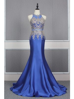 - Chic Long Mermaid Beaded Royal Blue Prom Evening Dress With Lace Appliques Open Backwas $899.00 Special Price $159.00