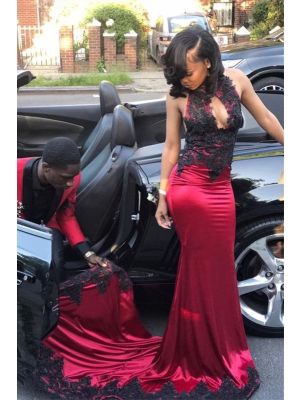- Sexy Long Burgundy Mermaid Cut Out Prom Evening Dress High Neck With Black Lacewas $699.00 Special Price $138.00