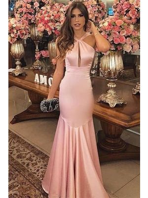 - Elegant Slim Pink Mermaid Prom Evening Dress Halter Sleeveless With Crystalswas $698.00 Special Price $146.00