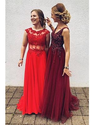 - Sexy Beaded Red See Through Prom Party Dress Scoop Cap Sleeves With Appliqueswas $618.00 Special Price $135.00