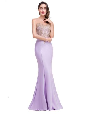 - Slim Mermaid Illusion Neckline Lilac Satin Gold Applique Prom Dresswas $490.00 Special Price $137.60