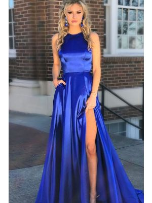 - Stunning Long A Line Royal Blue Prom Party Dress High Neck Sleeveless With Slit And Cutoutwas $599.00 Special Price $129.00