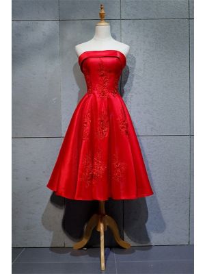 - Strapless Corset A Line Tea Length Red Satin Prom Evening Dress With Appliqueswas $789.00 Special Price $125.00