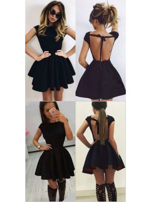 - Sexy A Line Cap Sleeves Backless Black Woman Clothing Short Mini A Line Causal Dresswas $359.00 Special Price $89.00