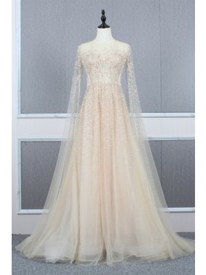 - Fairy Tale Champagne Tulle Beaded See Through Prom Evening Dress With Capewas $1,699.00 Special Price $289.00