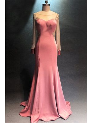 - Elegant Illusion Neckline Long Sleeve See Through Back Crystal Beaded Pink Mermaid Prom Evening Dresswas $806.00 Special Price $179.00