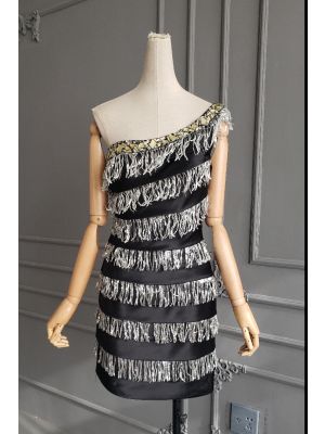 - Sexy One Shoulder Little Black Beaded Short Mini Fringe Dress Cocktail Party Dresswas $659.00 Special Price $148.00