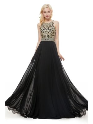 - Beautiful Gold Lace Bodice Black Chiffon Maxi Prom Evening Dress Corset Backwas $855.00 Special Price $145.00
