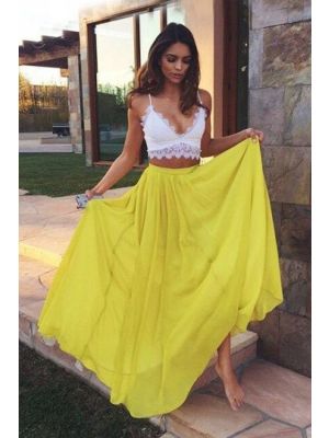 - Boho Two Pieces Prom Party Dress White Lace Top Yellow Chiffon Skirtwas $549.00 Special Price $115.00
