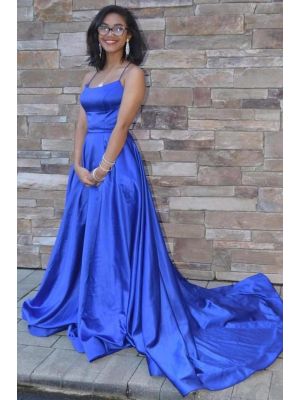 - Beautiful Long A Line Royal Blue Prom Evening Dress Square Neckline With Straps And Slitwas $529.00 Special Price $139.00