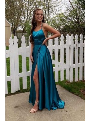 - Beautiful Long A Line Teal Prom Evening Dress Square Neckline With Straps And Slitwas $529.00 Special Price $139.00