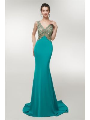 - Sexy V Neck Backless Crystal Beaded Turquoise Long Mermaid Prom Evening Dresswas $806.00 Special Price $189.00