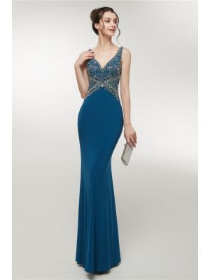 - Sexy V Neck Lace Up Back Crystal Beaded Teal Blue Long Mermaid Prom Evening Dresswas $816.00 Special Price $169.00