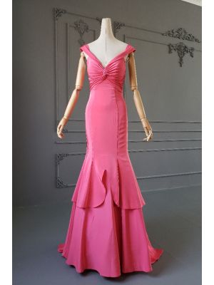 - Sexy Mermaid V Neck Long Pink Stretch Jersey Tiered Prom Evening Dress With Cutoutswas $769.00 Special Price $137.00