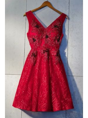 - Beautiful V Neck Corset Beaded Short Mini Red Lace Prom Evening Dress With Appliqueswas $557.00 Special Price $89.00