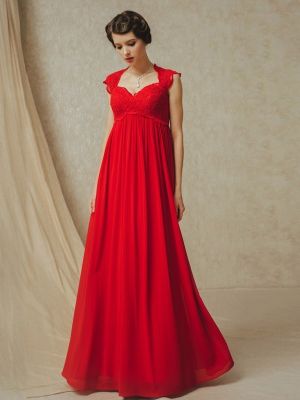 - Charming Empire Cap Sleeve Open Back Red Lace Chiffon Prom Evening Dresswas $688.00 Special Price $99.00