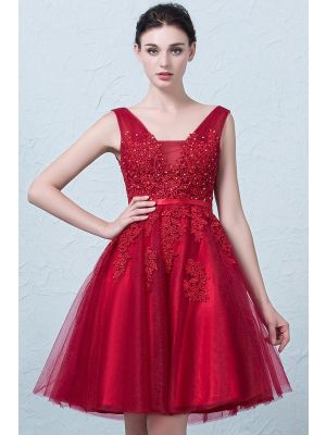 - Stunning Short A Line V Neck Beaded Red Lace Tulle Prom Homecoming Cocktail Dresswas $658.00 Special Price $95.00