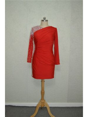 - Elegant Sheath Scoop Long Sleeves Short Mini Red Lace Jersey Beaded Cocktail Party Dresswas $529.00 Special Price $139.00